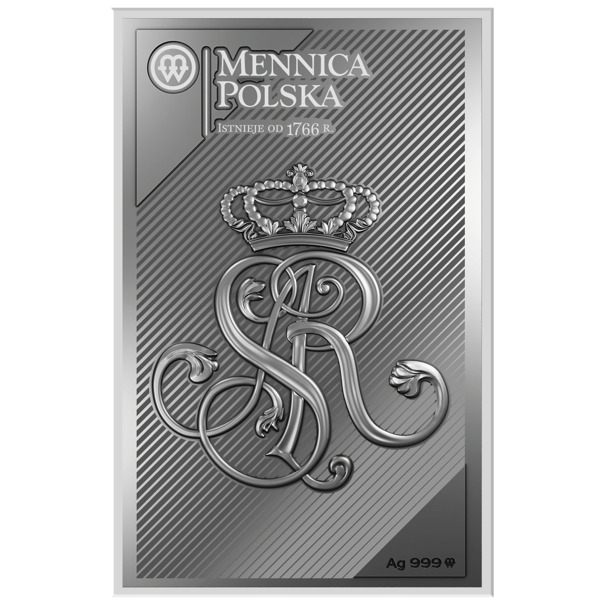 Srebrna sztabka kolekcjonerska wybita w Mennicy Polskiej z wizerunkiem obrazu Najświętsze Serce Pana Jezusa autorstwa Pompeo Batoni.